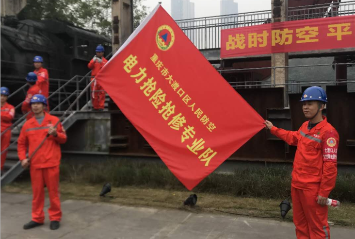重慶大渡口區(qū)人民防空辦公室組織的大渡口區(qū)2019年人民防空專(zhuān)業(yè)隊(duì)伍 防空襲綜合演練:現(xiàn)在進(jìn)入現(xiàn)場(chǎng)的是我區(qū)電力搶險(xiǎn)搶修專(zhuān)業(yè)隊(duì),這支專(zhuān)業(yè)隊(duì)由重慶寶翼電力設(shè)備維護(hù)有限公司組建。戰(zhàn)時(shí)該專(zhuān)業(yè)隊(duì)主要負(fù)責(zé)城市電力應(yīng)急供應(yīng)及電力中斷恢復(fù)任務(wù),本次演練主要負(fù)責(zé)電力系統(tǒng)受損時(shí)的恢復(fù)工作。